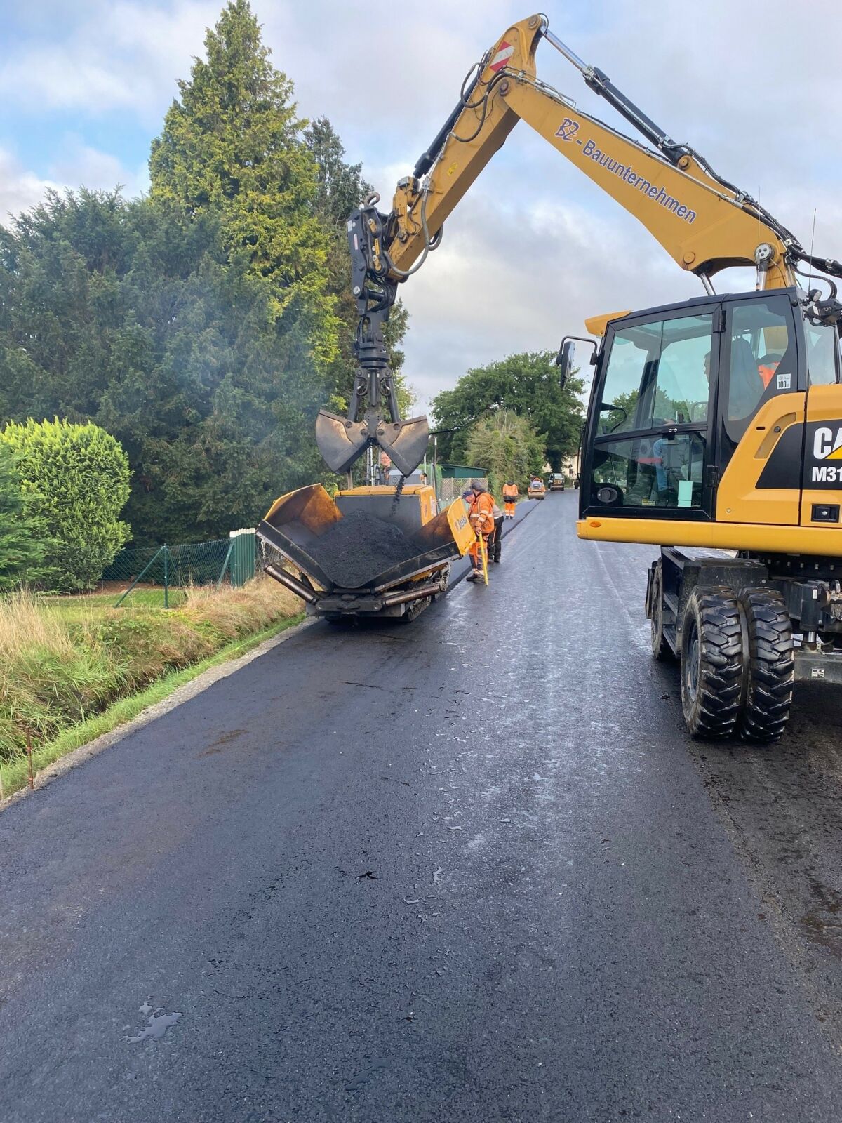 Ausbau der Fahrbahn und den Nebenanlagen, im Tiefbau, incl. der Verlegung eines neuen Regenwasserkanales. Des Weiteren der Teilausbau und Sanierung des Schmutzwasserkanales.
